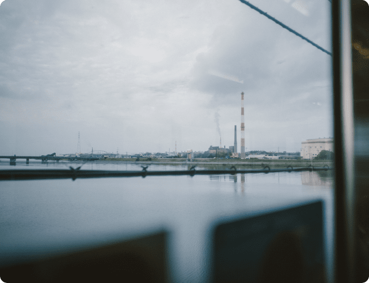 大きな川を越え、すこし重工業の気配も感じる街へたどり着く。